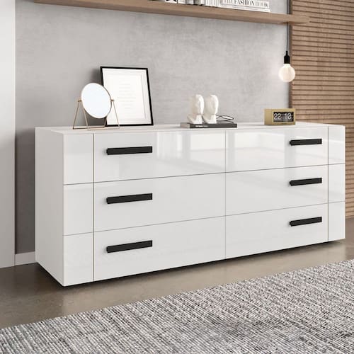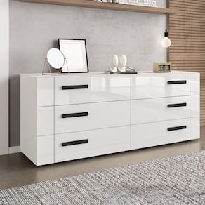 O(a) Cômoda Lisboa 6 Gavetas Branco - Politorno é produzido em MDF e MDP na escala de brilho Semi-Fosco, e possui um grau de dificuldade de montagem: Médio.