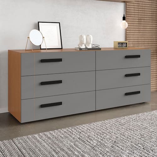 O(a) Cômoda Lisboa 6 Gavetas Freijó/Cinza - Politorno é produzido em MDF e MDP na escala de brilho Semi-Fosco, e possui um grau de dificuldade de montagem: Médio.