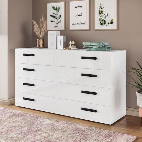 O(a) Cômoda Lisboa 8 Gavetas Branco - Politorno é produzido em MDF e MDP na escala de brilho Semi-Fosco, e possui um grau de dificuldade de montagem: Médio.