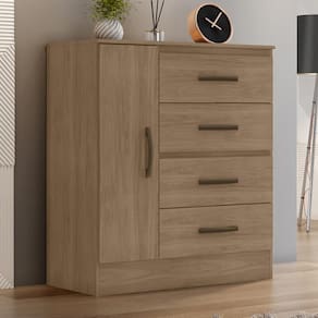 Cômoda Lite 1 Porta e 4 Gavetas - Móveis Leão Apresentamos a Cômoda Lite 1 Porta e 4 Gavetas, uma combinação de elegância e praticidade. Com estrutura em MDP e pintura UV, esta cômoda oferece durabilidade e um acabamento refinado. Possui uma porta com dobradiças metálicas, quatro gavetas com corrediças telescópicas e prateleiras internas para máxima organização. Os puxadores e pés em PVC garantem estabilidade e funcionalidade. Cada gaveta suporta até 7kg, proporcionando amplo espaço interno para suas necessidades. Ideal para quem busca sofisticação e eficiência em um único móvel.