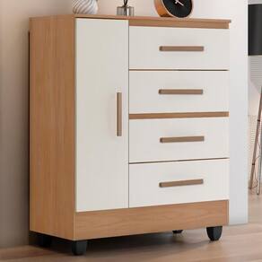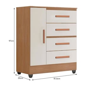 Cômoda Lite 1 Porta E 4 Gavetas Nature/off White Com Pés - Móveis Leão Nature/off White Cômoda Lite 1 Porta e 4 Gavetas com Pés - Móveis Leão A Cômoda Lite 1 Porta e 4 Gavetas com Pés é uma opção prática e funcional para manter o ambiente sempre organizado. Com estrutura em MDP e pintura UV, oferece durabilidade e ótimo acabamento. Conta com 1 porta com prateleiras internas, 4 gavetas com corrediças metálicas e puxadores em MDF. Os pés em PVC proporcionam estabilidade e um visual moderno. Cada gaveta suporta até 7kg, garantindo resistência no dia a dia. Ideal para quartos ou espaços multifuncionais. ESPECIFICAÇÕES: - Estrutura em MDP - Pintura UV - 1 Porta - Dobradiças metálicas - 4 Gavetas - Corrediças metálicas - Prateleiras Internas - Puxadores em MDF - Pés em PVC - Amplo espaço interno - Cada gaveta suporta até 7kg