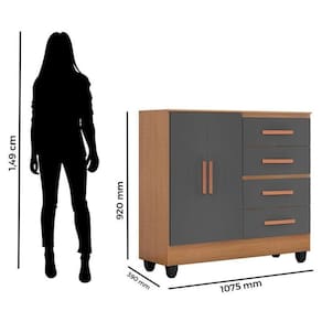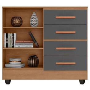 Cômoda Lite 4 Gavetas 2 Portas Nature Cinza Móveis Leão