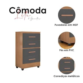 Cômoda Lite 4 Gavetas Nature Cinza Móveis Leão