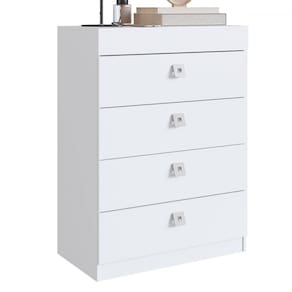 O(a) Cômoda Lock 4 Gavetas Branco - Art In Móveis é produzido em MDP na escala de brilho Semi-Brilho, e possui um grau de dificuldade de montagem: Médio.