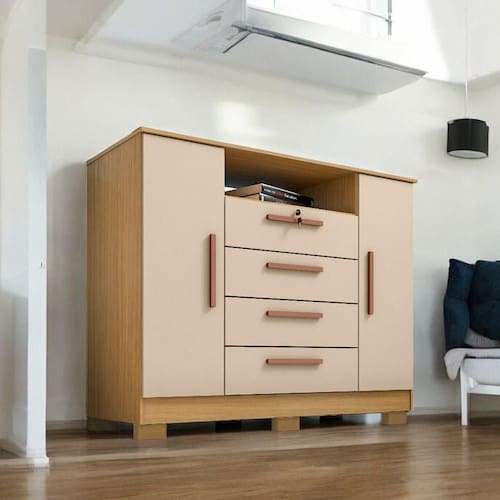 AS IMAGENS SÃO MERAMENTE ILUSTRATIVAS E PODEM SOFRER VARIAÇÕES DE COR E PEQUENOS DETALHES DE ACORDO COM O SEU MONITOR, ILUMINAÇÃO DO AMBIENTE E ATÉ MESMO A SUA PERCEPÇÃO Ãmoda London 2 Portas e 4 Gavetas Carvalho Off White