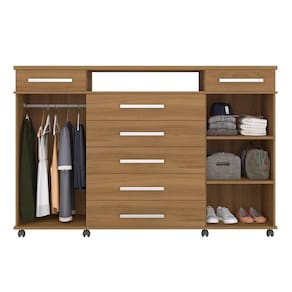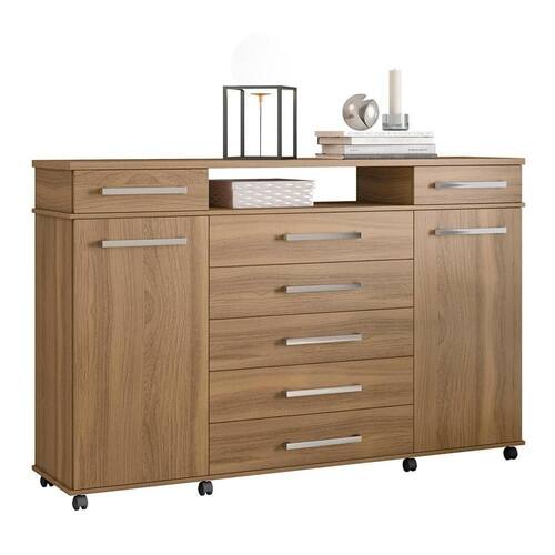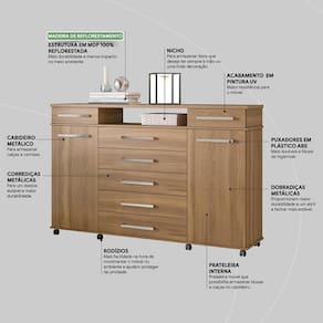 Cômoda London 2 Portas E 7 Gavetas Amêndola - Demóbile Amêndola Cômoda London 2 Portas e 7 Gavetas - Demóbile A Cômoda London é uma potência para acomodar peças dobradas nas gavetas, roupas no cabideiro e lugar especial para os seus sapatos! E calma, porque não acabou. Espaços dedicados aos seus acessórios e uma incrível bancada para você acomodar uma decoração especial ou deixar tudo o que precisa sempre ao alcance das mãos. A Cômoda London tem amplas dimensões e para facilitar a movimentação conta com rodízios. Ela dá um show, não é mesmo? Você vai amar a Cômoda London! ESPECIFICAÇÕES: - Estrutura em MDP - Pintura UV - 2 Portas - Dobradiças metálicas - 7 Gavetas - Corrediças metálicas - Nicho - Cabideiro metálico - Prateleira interna - Puxadores em plástico ABS - Rodízios que facilitam a movimentação