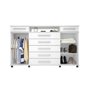 Características: 7 gavetas, prateleiras, cabideiro e tampo reforçado para suportar televisores de até 50 polegadas, garantem a usabilidade e funcionalidade do móvel. Confeccionada em MDP de alto padrão, 25 mm, 15mm e 12mm, acabamento com pintura UV e corrediças metálicas nas gavetas completam seu alto desempenho. Para garantir a qualidade do produto dentro da embalagem, as caixas são revestidas por um plástico termoencolhível e todas as peças são separadas por isomanta, tudo para preservar e evitar o atrito entre as peças dentro da embalagem. Você contará também com um manual com o passo a passo para auxiliar no momento da sua montagem.