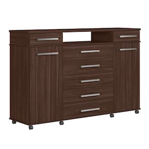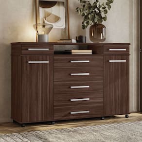 O(a) Cômoda London 7 Gavetas Café Touch - Demóbile é produzido em MDP na escala de brilho Brilho e Fosca com Textura, e possui um grau de dificuldade de montagem: Médio.