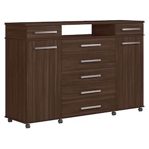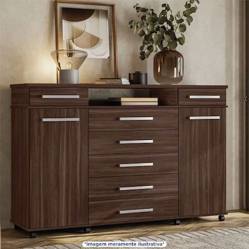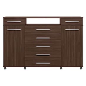 Materiais de qualidade! Sua estrutura em MDP, que garante maior resistência e durabilidade para o móvel. E tem como ficar melhor! Ela conta com corrediças e dobradiças metálicas que proporcionam a abertura das gavetas e portas ainda mais suave e sem impactos. E mais seus rodízios contribuem para a melhor movimentação do móvel.