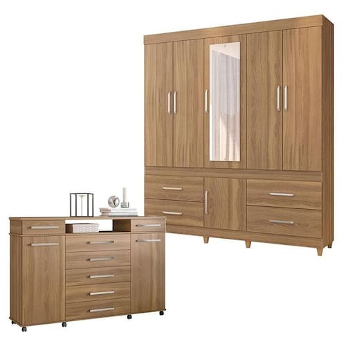 Cômoda London e Guarda Roupa Casal Guarujá Amêndola Touch - Demóbile