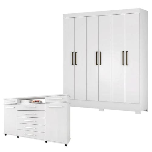 Cômoda London e Guarda Roupa Casal Verso Branco - Demóbile