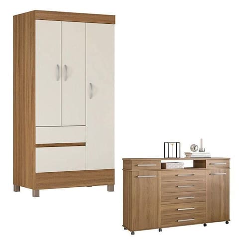 Cômoda London e Guarda Roupa Solteiro Amêndola Off White - Demóbile