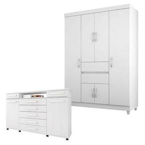 Cômoda London e Guarda Roupa Solteiro Ecom 2 Branco Flex - Demóbile