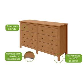 Estrutura: MDP/MDF de alta qualidade de 15 a 25 mm de espessuraAcabamento: Pintura U.V e acabamento em microtexturaTampo: Com 25 mm de espessuraGaveta: Sim, 06 gavetas com corrediças telescópicasPorta: Não,Puxador: Sim, em ABSPés: Sim, pés robustos em MDF de 25 mm de espessuraDiferencial: Produto avaliado e aprovado por um rigoroso controle de qualidade; Design minimalista com um toque vintage; Gavetas ideais para acomodação das roupas em maiores quantidades; Gavetas grandes e espaçosas com corrediças telescópicas ; Pés robustos que garantem maior estabilidadeDimensões do produto montado