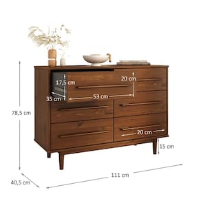Materiais e Acabamento Material da Estrutura: Madeira Maciça - Finger Tipo da Madeira: Pinus Fundos da Gaveta: MDF Fundos do Móvel: MDF Laterais da Gaveta: MDP Puxadores: Madeira Escala de Brilho: Fosco Material dos Pés: Pinus Maciço Recomendação de Limpeza: Utilize pano levemente úmido Características do Produto Possui Gavetas: Sim Quantidade de Gavetas: 6 Gavetas Espaçosas Estilo: Moderno Ambiente Principal: Quarto Adulto Precisa de Montagem: Sim Sistema de Montagem: Minifix / Cavilhas / Parafusos. Complexidade da Montagem: Médio Volumes: 02 Garantia do Fabricante: 12 meses Montagem: Recomendamos que seja feita por um . Manual de Montagem: Sim