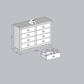 CONTEÚDO DA EMBALAGEM:<Br> 1 Cômoda 8 Gavetas<Br> 1 Kit Ferragens<Br> 1 Manual de Montagem<Br><Br>