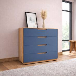 O(a) Cômoda Madri 4 Gavetas Azul/Freijó - Politorno é produzido em MDP na escala de brilho Semi-Fosco, e possui um grau de dificuldade de montagem: Médio.