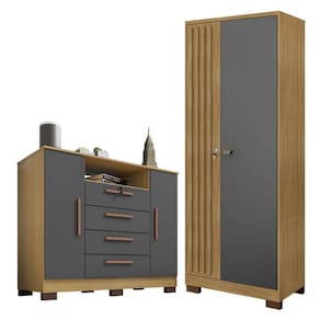 Cômoda Madri e Armário Multiuso Versatile Carvalho Americano Grafite – Incorplac