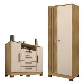 Cômoda Madri e Armário Multiuso Versatile Carvalho Americano Off White Incorplac