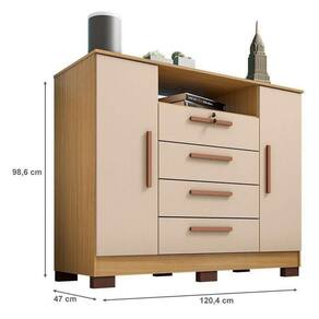 Cômoda Madri 4 Gavetas 2 Portas Carvalho Americano Off White - Incorplac