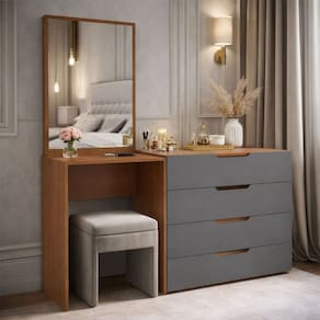 O(a) Cômoda Madrid 4 Gavetas com Espelho Cinza/Freijó - Politorno é produzido em MDP na escala de brilho Semi-Fosco, e possui um grau de dificuldade de montagem: Médio.
