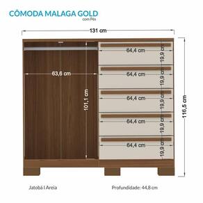 Cômoda Málaga Gold 2 Portas e 5 Gavetas com Pés - Santos Andirá