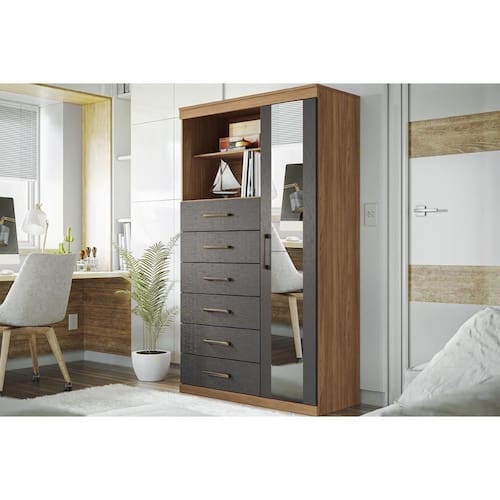 Cômoda de Quarto Marabá 1.6 c/ 1 Porta 2 Nichos e 6 Gavetas c/ Espelho Jatoba/Grafitte - Santos Andirá Marca: Santos Andirá