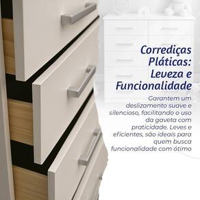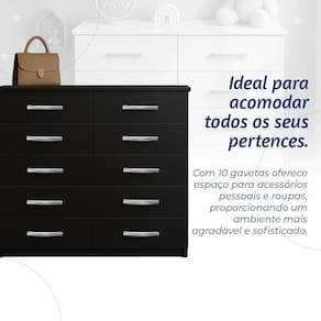 Amplo Espaço Interno: Com 10 gavetas espaçosas, a cômoda oferece excelente capacidade de organização.