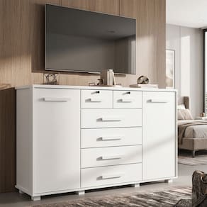 A Mega Cômoda foi desenvolvida para proporcionar máxima organização com um design moderno e funcional. Produzida em MDP/MDF de alta resistência, garante durabilidade e excelente desempenho no uso diário.