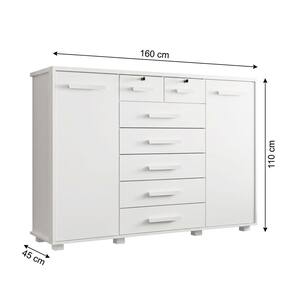 CARACTERÍSTICAS TÉCNICAS Tipo: Cômoda com sapateira Material: MDP/MDF Cor: Branco Quantidade de gavetas: 7 (sendo 2 com chave) Peso suportado: 12 kg por gavetas.