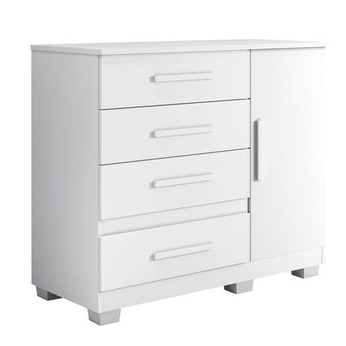 A Cômoda Melissa com seu lindo design traz charme e elegância a qualquer espaço, contém 1 porta e 1 prateleira para acomodar seus acessórios, além de possuir 4 gavetas com corrediças telescópicas que proporcionam uma maior suavidade em seu uso, ideal para pequenos espaços. Sua fabricação utiliza a linha mdp perffect 15 mm, que une a sustentabilidade à inovação tecnológica, proporcionando durabilidade e fácil limpeza; inspirando sofisticação ao mobiliário. A Cômoda Melissa possui pintura UV que conta com boa resistência, é fácil de limpar e é ecologicamente correto, pois utiliza madeira de reflorestamento, evitando o desmatamento.