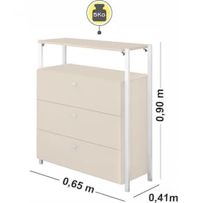 Cômoda Metalic Off White/branco 3 Gavetas Móveis Estrela