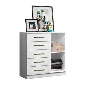 Prática e elegante, oferece 5 gavetas espaçosas com corrediças telescópicas e 1 porta para organizar roupas e acessórios com facilidade.