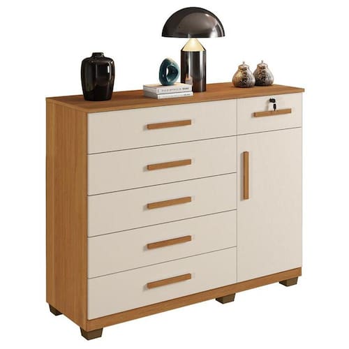 Comoda Milão Quarto com 6 Gavetas e 1 Porta - Off White