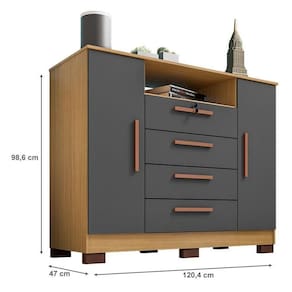 Cômoda Mirassol 4 Gavetas 2 Portas Carvalho Americano Grafite - Incorplac