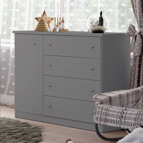 Produto e inspirado na decoracao escandinava, aconchegante e encantador, capaz de adequar o tradicional com o contemporaneo, excelente para modernizar seu ambiente, podendo ser utilizado para quartos adultos, juvenil e infantil. Possui medidas de 1.010mm de altura, 1.265mm de largura e 510 de profundidade, nas gavetas possuem desenhos de usinagem em baixo relevo, gavetas com corredicas telescopicas asseguram um fechamento suave, puxadores ABS na cor bronze. Este produto deixa qualquer ambiente moderno e clean, inovando sua forma de decorar seus espacos.