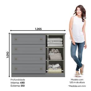 FICHA TECNICA: Cor Interna: Trama Acabamento: Pintura UV Escala de Brilho: Na cor branca e cinza: Fosco Material Principal: MDP Material do Fundo: MDF Qtd. Gavetas: 4 Peso Maximo por Gaveta: 3 Kg Material do Puxador Gaveta: ABS Material da Corredica: Metalicas Material da Gaveta: MDP Qtd. Portas: 1 Material da Dobradica: Metalicas Material do Puxador Porta: ABS Tipo Porta: Bater Qtd. Prateleiras: 2 Peso Maximo por Prateleira: 8 Kg Material da Prateleira: MDP Qtd. Pes: Nao possui Produto Suporte ate -Kg-: 36 Kg Possui Vidro: Nao Possui Espelho: Nao Possui Iluminacao: Nao Tampo Basculante: Nao Possui Organizador de Gaveta: Nao Possui porta Objetos: Nao Possui Nichos: Nao Medidas Montado: 101 x 126,5 x 51 Cm Peso Montado: 56 Kg