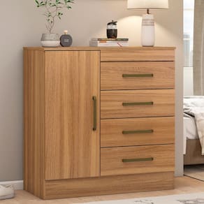 Cômoda Montevidéu 1 Porta 4 Gavetas Amêndoa - Marrom