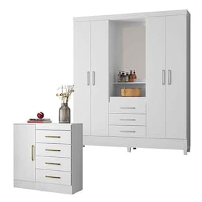 Cômoda Montevidéu e Guarda Roupa Casal Capelinha Pérsia Branco Flex - Demóbile