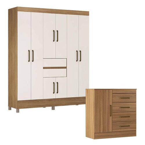 Cômoda Montevidéu e Guarda Roupa Casal Munique Amêndola Off White - Demóbile