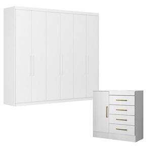 Cômoda Montevideu e Guarda Roupa Casal Venice 62480 Branco Brilho - Demóbile