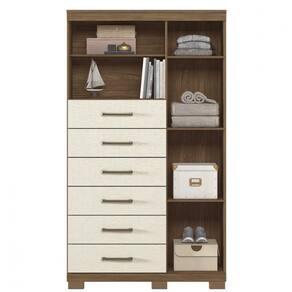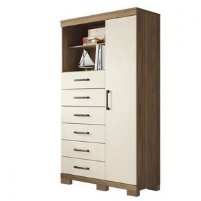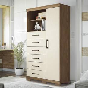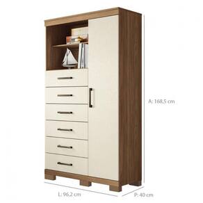 São 168,5 cm de altura e muito espaço, suas 06 gavetas possuem o tamanho perfeito para acabar com o problema de peças de roupas misturadas por exemplo. Sua porta também se torna muito versátil, com abertura por dobradiças ela conta com 03 prateleiras perfeitas para guardar calçados, caixas e objetos um pouco maiores.