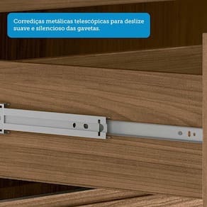 Informacoes Complementares: Estrutura em MDP 12mm, fundo em HDF 2,5mm, frente das gavetas, portas e tampo superior em MDP 15mm. 1 Cabideiro em aluminio. 2 Espelhos Cristal 75x20 (AxL - cm) e espessura 3mm. Pes em plastico ABS com 5cm. Tampo suporta ate 20kg, gaveta 3kg e prateleira 5kg.