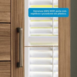 Informacoes Complementares: Estrutura em MDP 12mm, fundo em HDF 2,5mm, frente das gavetas, portas e tampo superior em MDP 15mm. 1 Cabideiro em aluminio. 2 Espelhos Cristal 75x20 (AxL - cm) e espessura 3mm. Tampo suporta ate 20kg, gaveta 3kg e prateleira 5kg.