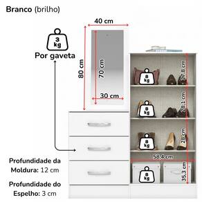 MDP/MDF, plástico e moldura com espelhoComoda Multiuso B700, desenvolvido para otimizar o espaço e manter o ambiente sempre bem organizado. Estrutura em MDP de 12/15 mm (fundo em MDF de 3 mm) e pintura UV texturizada. Possui portas com dobradiças metalicas e gavetas com corrediças metálicas, prateleiras internas que suporta 8 kg cada. Os puxadores são produzidos em ABS, oferecendo resistência e acabamento uniforme ao conjunto. Espelho Inclinado de 70 x 30 x 3 cm. Produtos serão entregues em 02 volumes.