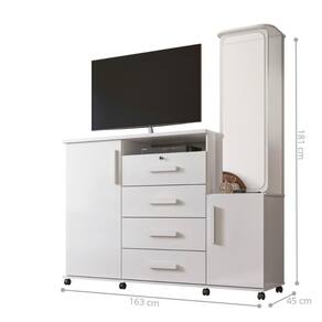 LARGURA DO PRODUTO COM EMBALAGEM (CM): 46 | COR PREDOMINANTE: BRANCO BRILHO | COMPRIMENTO DO PRODUTO COM EMBALAGEM (CM): 167 | ESTADO DE ORIGEM: SP | PESO DO PRODUTO (KG): 84 | COMPRIMENTO DO PRODUTO (CM): 45 | QUANTIDADE DE PORTAS: 2 | ALTURA DO PRODUTO COM EMBALAGEM (CM): 29 | MATERIAL PRINCIPAL: MDP/MDF | CORES DO PRODUTO (FILTRO DE CORES): BRANCO BRILHO | PRODUTO: COMODA | QUANTIDADE DE CAIXAS NA EMBALAGEM: 3 | PESO DO PRODUTO COM EMBALAGEM (KG): 84 | MARCA: CASAH | LARGURA DO PRODUTO (CM): 163 | GARANTIA DO FABRICANTE: 3 | ALTURA DO PRODUTO (CM): 181 | INSTRUÃ?Ã-ES/CUIDADOS: Limpar com pano macio e seco, nÃo utilizar produtos abrasivos. | PRODUTO PRECISA DE MONTAGEM?: Sim, a montagem à facil mas sugerimos a contrataÃÃo de um montador profissional para a montagem do produto. NÃo nos responsabilizamos por danos causados no ato da montagem. | DESCRIÃ?Ã?O DO TAMANHO: 181X163X45 | QUANTIDADE DE GAVETAS: 4 | QUANTIDADE DE PRATELEIRAS: 1