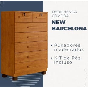 A COMODA BARCELONA COM SEU LINDO DESING TRAS CHARME E ELEGANCIA A QUALQUER ESPAÇO, PRODUZIDO TODA EM CHAPA DE 15 MM QUE GARANTE UMA ROBUSTES INCRIVEL, ALEM DE POSSUIR 7 GAVETAS , 2 GAVETAS COM CHAVE AINDA CONTA COM CORREDIÇA TELESCOPICA QUE PROPORCIONA UMA MAIOR SUAVIDADE EM SEU USO DIARIO, ACOMODA MUITA ROURA E SEUS ACESSORIOS TUDO MUITO BEM ORGANIZADO.Dimensões:Altura: 132 CmLargura: 78 CmProfundidade: 45 CmCaracterísticas:Tipo Pintura: U.V.Material Principal: MDPPossui Gavetas: 7Possui Chave e Tranca: 2Tipo Puxador: MadeiradoComplexidade Da Montagem: MédioSistema De Montagem: Parafusos e CavilhaPossui Pés: Sapatas UMaterial Dos Pés: PVCObservações:Produto necessita de montagem. Não oferecemos serviço de montagem, mas todos os produtos possuem manual de montagem com o passo a passo. Recomendamos contratar um profissional de montagem. Pode existir alguma diferença de tonalidade entre a foto e o produto, devido ao tratamento de imagens e à calibração de cores do monitor.