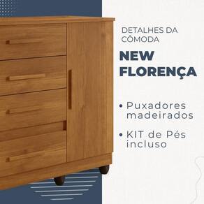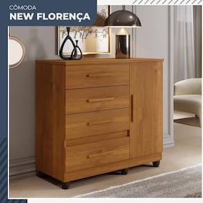 Quer um movel para deixar seu quarto mais pratico e funcional? A Comoda Florenca e perfeita para voce. Possui quatro gavetas com excelente profundidade e espaco interno. As gavetas com corredica telescopica proporcionam maior abertura e melhor aproveitamento do espaco. E fabricada com materiais de alta qualidade, oferecendo mais firmeza e durabilidade. Alem disso, tem uma porta que auxilia na organizacao e armazenamento dos objetos. Os puxadores sao madeirados, proporcionando um otimo acabamento ao movel.