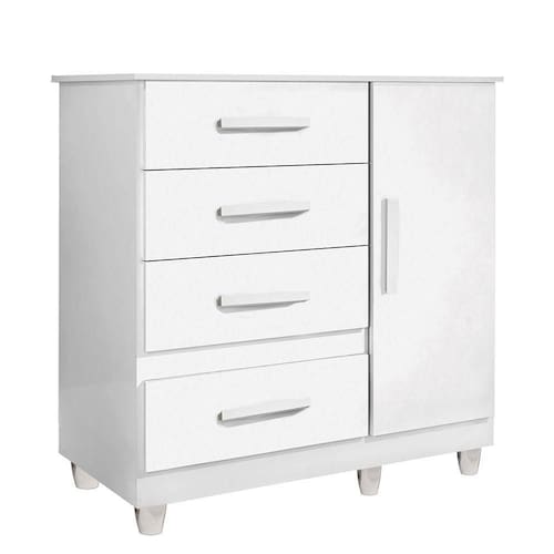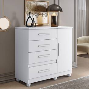 Quer um móvel para deixar seu quarto mais prático e funcional? A Cômoda Florença é perfeita para você. Possui quatro gavetas com excelente profundidade e espaço interno. As gavetas com corrediça telescópica proporcionam maior abertura e melhor aproveitamento do espaço. É fabricada com materiais de alta qualidade, oferecendo mais firmeza e durabilidade. Além disso, tem uma porta que auxilia na organização e armazenamento dos objetos. Os puxadores são madeirados, proporcionando um ótimo acabamento ao móvel.