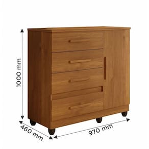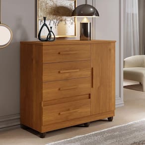 Quer um móvel para deixar seu quarto mais prático e funcional? A Cômoda Florença é perfeita para você. Possui quatro gavetas com excelente profundidade e espaço interno. As gavetas com corrediça telescópica proporcionam maior abertura e melhor aproveitamento do espaço. É fabricada com materiais de alta qualidade, oferecendo mais firmeza e durabilidade. Além disso, tem uma porta que auxilia na organização e armazenamento dos objetos. Os puxadores são madeirados, proporcionando um ótimo acabamento ao móvel.